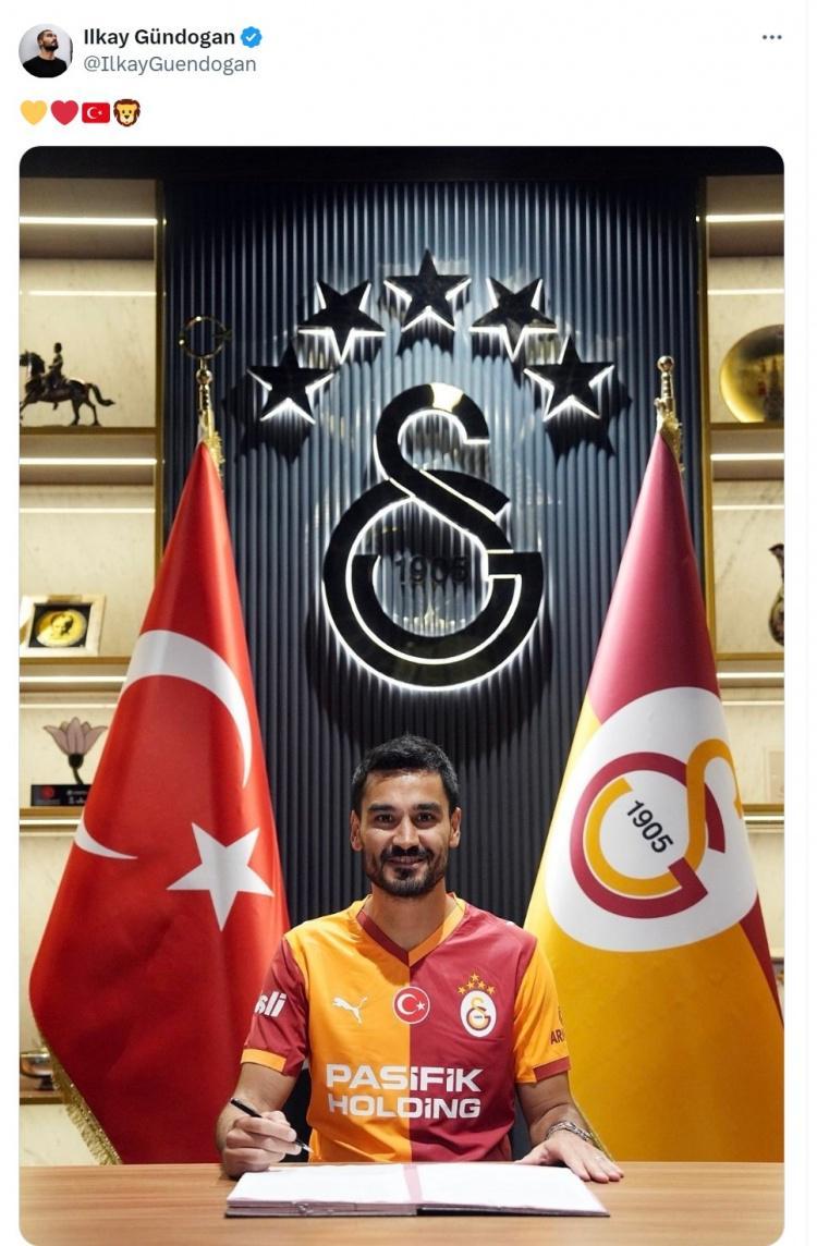 直播吧9月3日讯 曼城中场京多安免签加盟加拉塔萨雷,京多安更新社媒动态,晒出签约的照片。