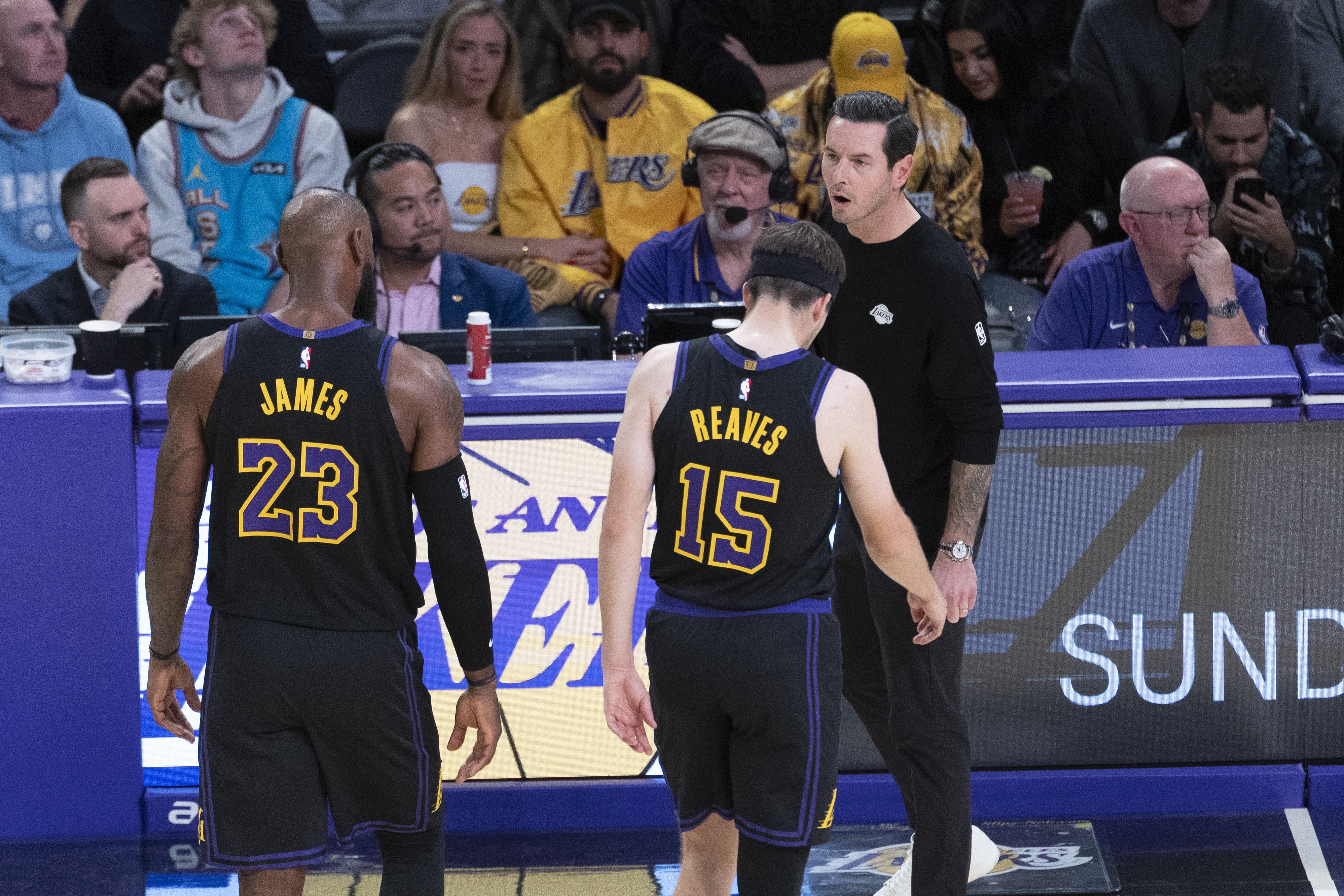 当这三人组同时在场时,球队在防守端顶住了压力,百回合失分仅为109.6分。这要归功于该阵容在第一节和第三节开局时对手罚球频率极低,以及对手低迷的三分手感。但东契奇、詹姆斯和里夫斯都能提供稳健的篮板保护,而且雷迪克对湖人随赛季深入而增加的联防频率感到满意。